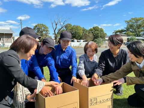家庭の生ゴミを混ぜて分解させ、栄養豊かな堆肥を作る、CO2削減にもつながる取り組みだ。